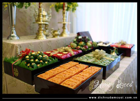 Mâm quả ngày cưới có đầy đủ các lễ vật