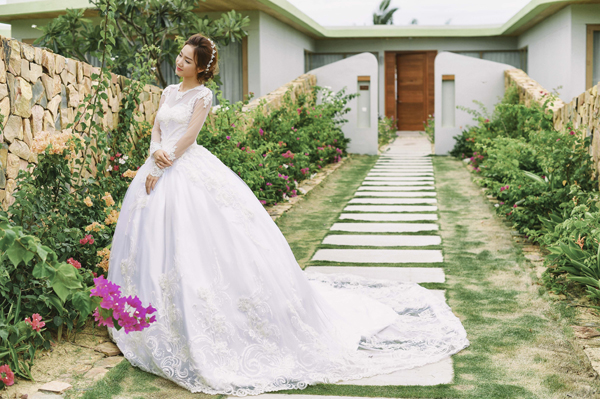 Chiếc váy xòe bồng lộng lẫy là gợi ý hoàn hảo biến cô dâu thành nàng công chúa xinh đẹp trong ngày cưới.