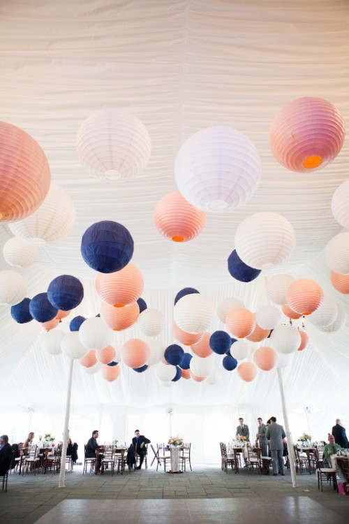 Đèn lồng thường được treo cao, vừa không gây vướng víu cho khách mời, vừa trang trí cho không gian trần cao.