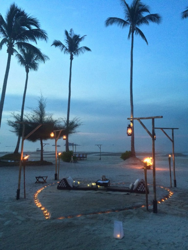Xuôi xuống phía Nam, cách Singapore chỉ một chuyến phà là hòn đảo Bintan xanh tươi của Indonesia nơi có một góc may mắn dành cho những đôi tình nhân ngay trên bãi cát trắng mịn của khu nghỉ dưỡng The Sanchaya. Bãi biển riêng của khu nghỉ dưỡng đẹp không thua gì những dải cát thơ mộng ở thiên đường Maldives. Ở đó, bàn tiệc tối dành cho hai người được đặt giữa một trái tim lớn được xếp từ những ngọn nến lung linh dưới những tán dừa đang nhẹ nhàng đong đưa theo gió. Đôi tình nhân có thể vừa dùng bữa tối trong tiếng sóng vỗ vừa ngắm hoàng hôn đang dần buông trên biển.