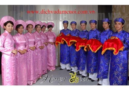 Gam màu xanh của đồng phục bưng quả thích hợp cho những chiếc váy sặc sỡ mà cô dâu đã chọn cho ngày cưới của mình...!