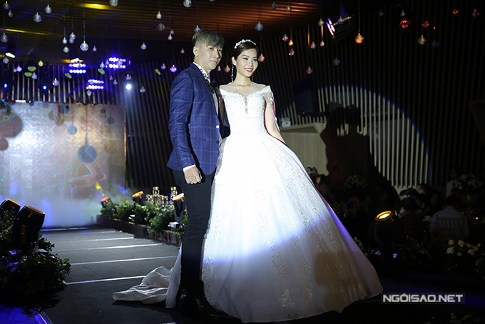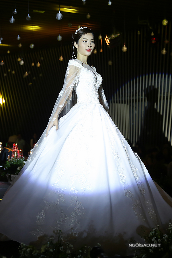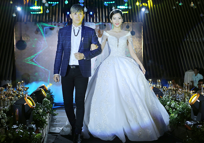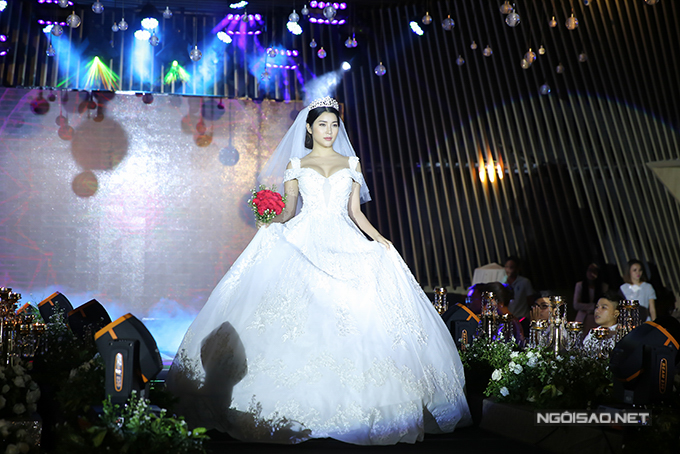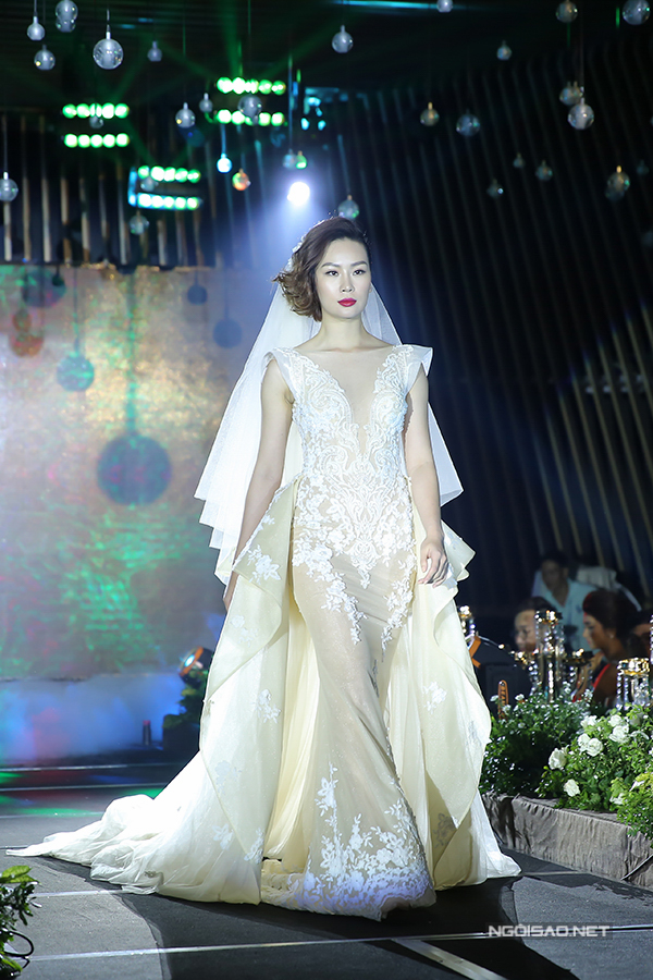 Tháp tùng cô là người mẫu Nam Phong. Cả hai sánh đôi tình tứ, phối hợp ăn ý khi hóa thân cô dâu, chú rể.