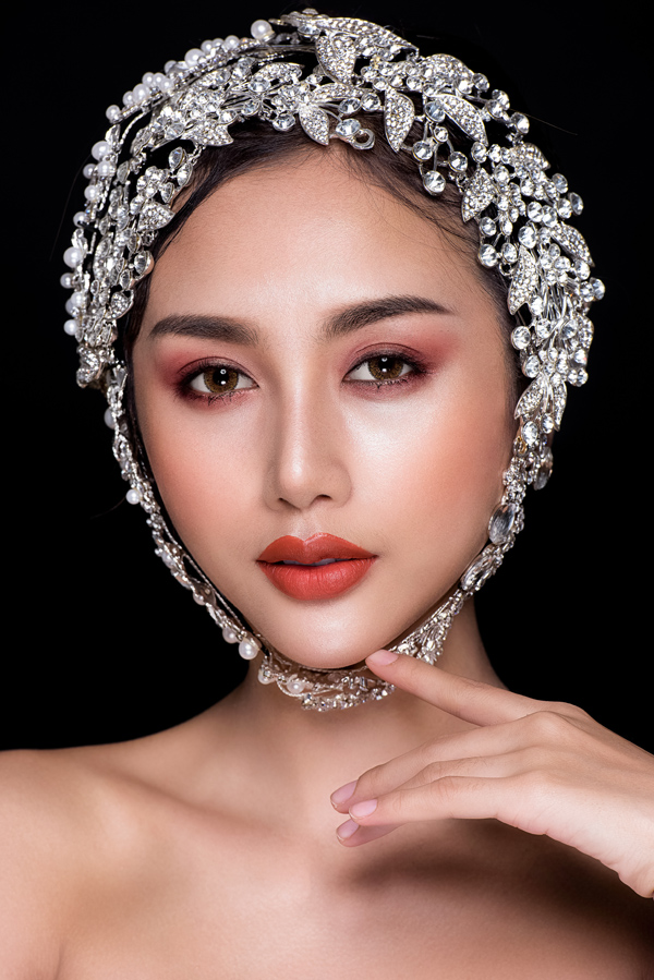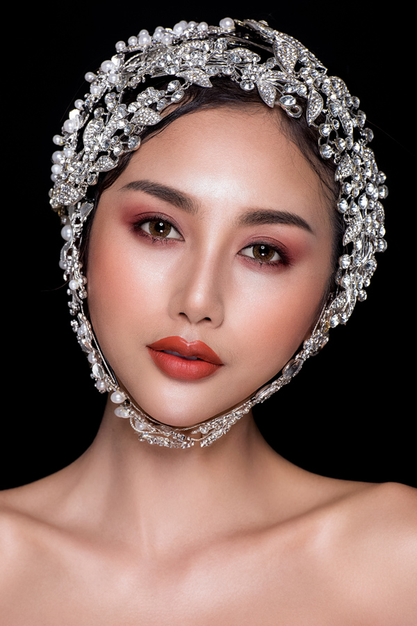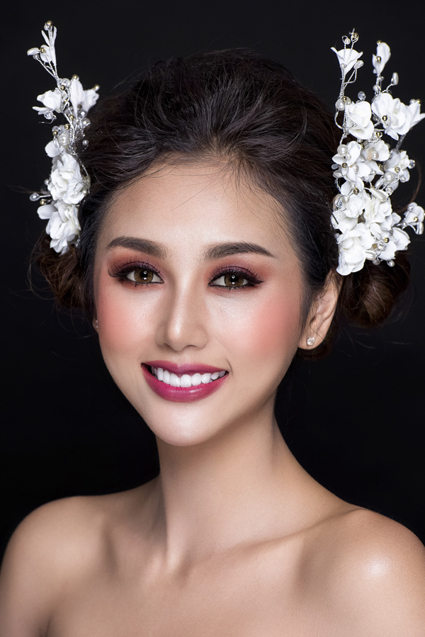 Màu son tôn da, giúp diện mạo tươi tắn đồng thời khoe được nét đẹp sang trọng của cô dâu.