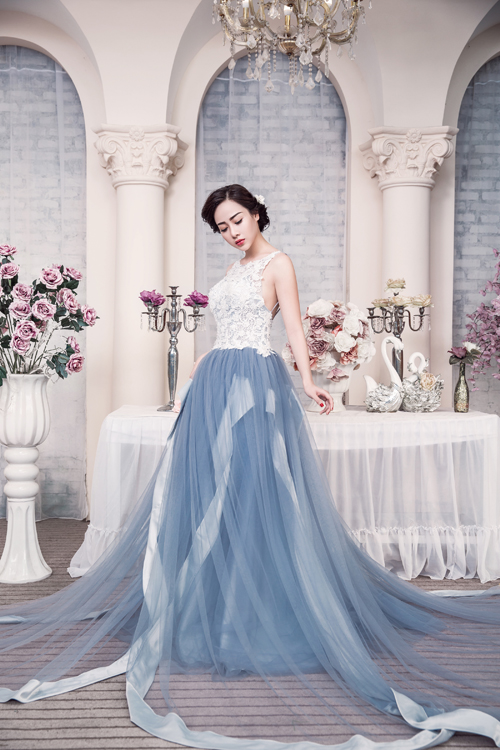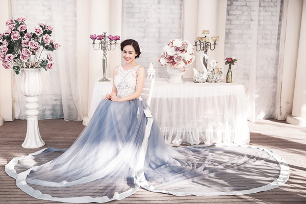 Thay vì chiếc váy cưới màu trắng truyền thống, cô dâu có thể làm đám cưới của mình phong cách, mới mẻ hơn với bộ soiree màu ghi xám.