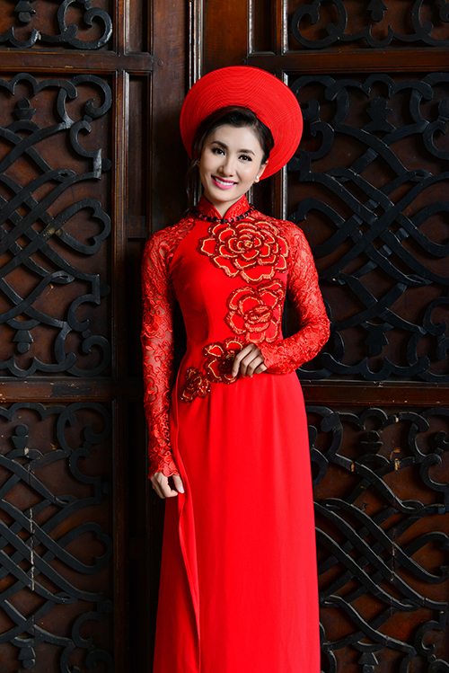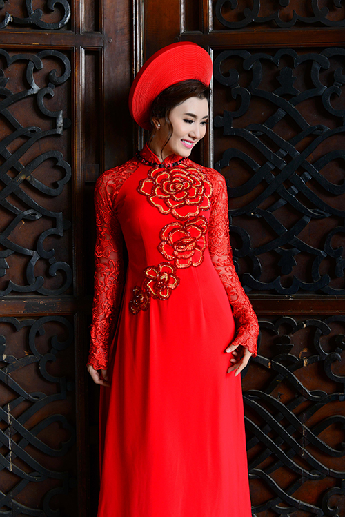 Áo dài đỏ vốn được yêu thích trong đám cưới bởi màu đỏ tượng trưng cho tình yêu ngọt ngào và hạnh phúc bền lâu.