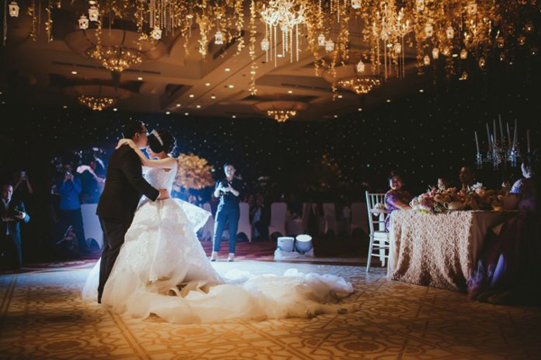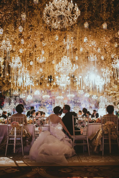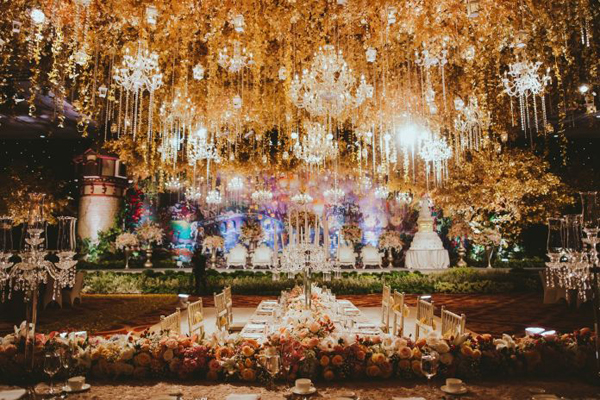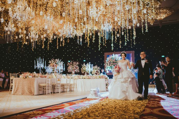 'Bầu trời' ánh vàng đồng sáng bừng trong tiệc cưới.