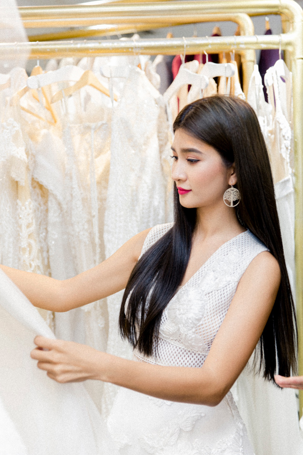 Kim Tuyến đi thử trang phục, chuẩn bị tham gia dự án hợp tác cùng nhà thiết kế Linh Nga.