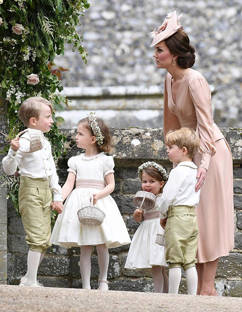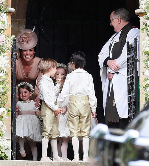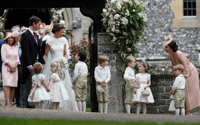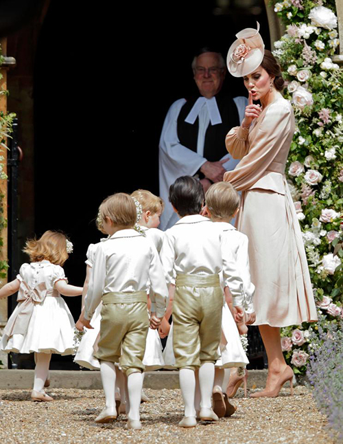 Không chỉ tất bật chăm sóc cô dâu, công nương Kate còn phụ trách việc dẫn dàn phù dâu nhí bước vào lễ đường và làm "vú em" trông chừng đội phù dâu.
