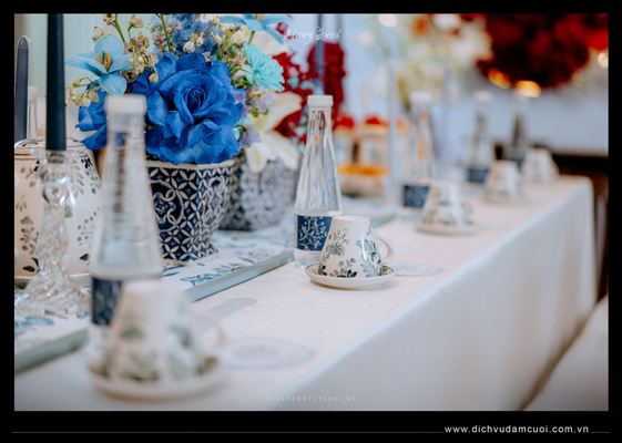 Không gian buổi Lễ Đính Hôn của Linh & Duy đã diễn ra thật tươi mới của gam màu xanh như mang đến hơi thở của biển cả. Hoạ tiết indochine được lồng ghép hiện đại đã tạo nên một chiếc Lễ Đính Hôn mang đậm phong cách Đông Dương khi kết hợp trọn vẹn giữa tinh thần lãng mạn của phương Tây và nét đẹp truyền thống của Việt Nam.