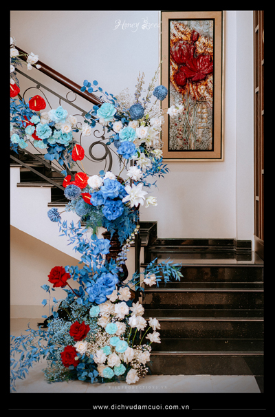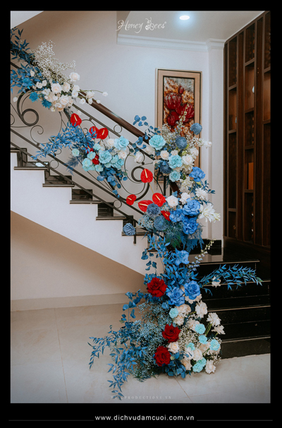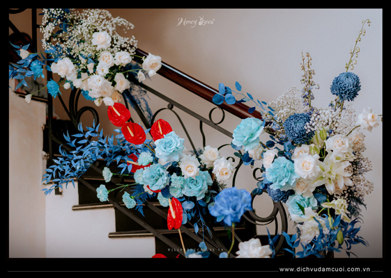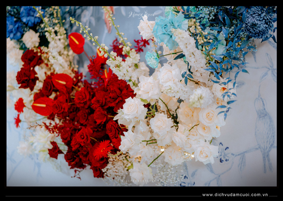 Để những hạng mục thiết kế trở nên tinh tế, đơn giản nhưng đầy điểm nhấn thì Honey Bees đã khắc họa bởi vô vàn bông hoa tươi rực rỡ đồng bộ xuyên suốt buổi lễ càng tăng thêm sự sang trọng, thanh lịch nhưng vẫn làm nổi bật sự ấm cúng và truyền thống của nền văn hoá Đông Nam Á. Đây là phong cách mà cô dâu Linh rất yêu thích, vì thế chúng mình đã biến hóa một không gian thật thơ và thật mơ mang những nét đặc trưng và cá tính riêng của hai bạn.