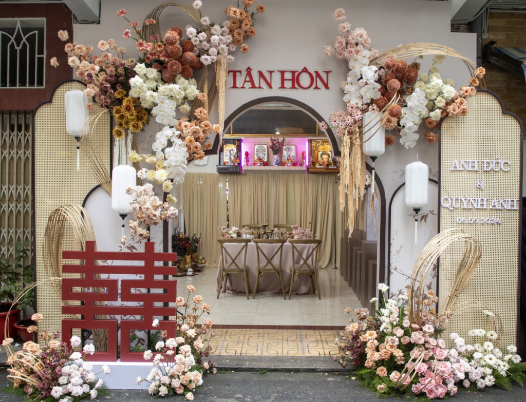 Anh Đức - Anh Phạm dành bốn tháng chuẩn bị, trang trí gia tiên concept truyền thống.