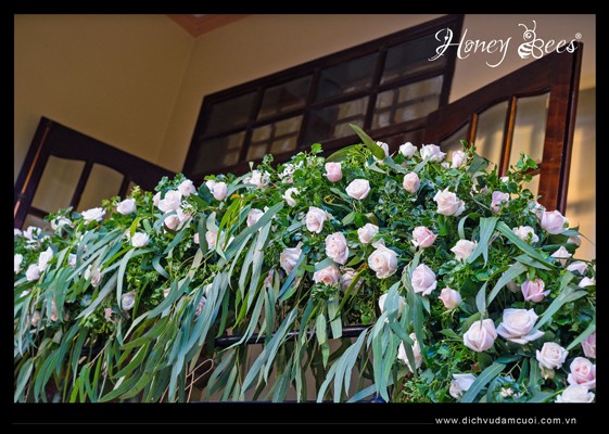 Trang trí lễ vu quy, trang trí lễ gia tiên - hoa tươi trang trí dọc cầu thang