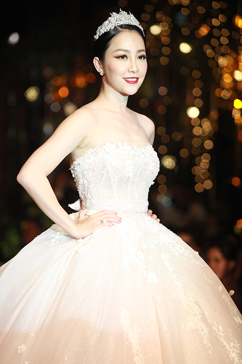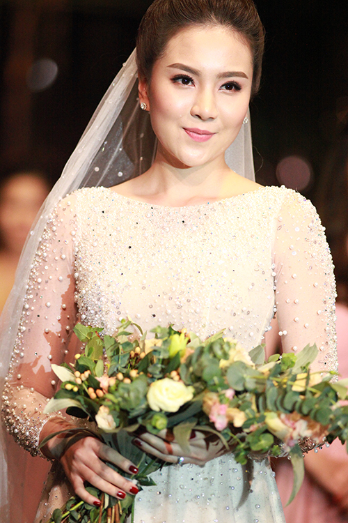 Cô diện lại bộ váy cưới được NTK Phương Linh ‘đo ni đóng giầy’ trong ngày cưới.