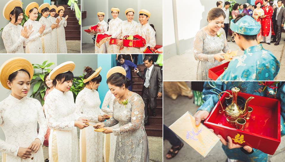 Hai thành viên này sẽ vào nhà gái trước và trao lễ vật cho mẹ cô dâu để đặt lên bàn thờ gia tiên. Sau đó, trưởng họ và người đi cùng sẽ trở ra để thông báo cho đoàn nhà trai chuẩn bị vào làm lễ đón dâu chính thức.
