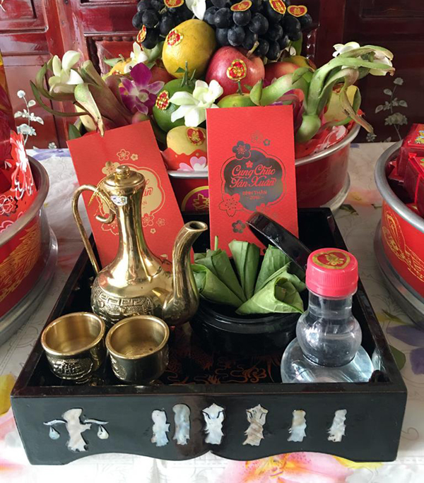 Mẹ cô dâu sẽ nhận lễ vật rồi đặt lên bàn thờ tổ tiên, sau đó tiến hành thắp hương. Đây cũng như là lời xin phép với gia tiên về việc cưới hỏi của con gái. Nếu khoảng cách giữa hai nhà xui gia tương đối xa thì lễ này nên được làm chung với đám hỏi hay lúc đón dâu.