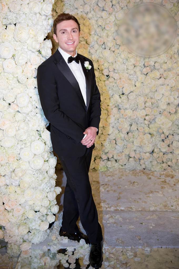 Chú rể Daryl diện vest của Armani. Anh được biết nhiều qua vai diễn Juni Cortez trong series phim Spy Kids, TV show như Ben 10 và Ultimate Spiderman.