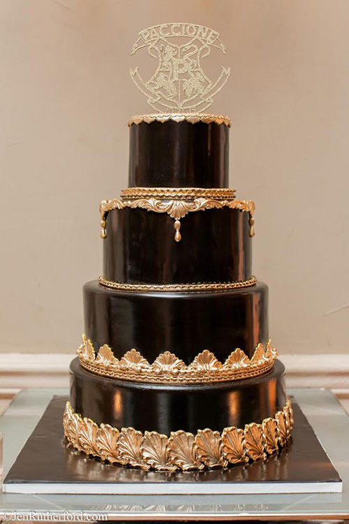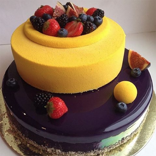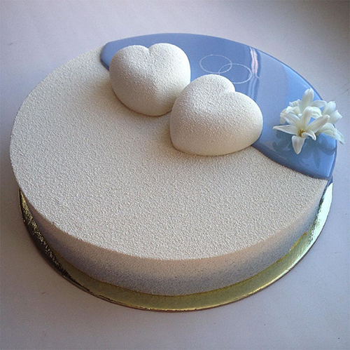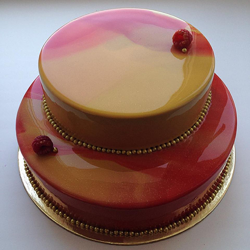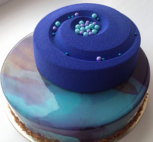 Chiếc bánh tráng gương với chi tiết cầu kỳ thể hiện nghệ thuật đương đại sẽ mang đến sự phá cách cho hôn lễ. Trong mùa cưới 2017, bánh cưới style bóng loáng này hứa hẹn được ưa chuộng.