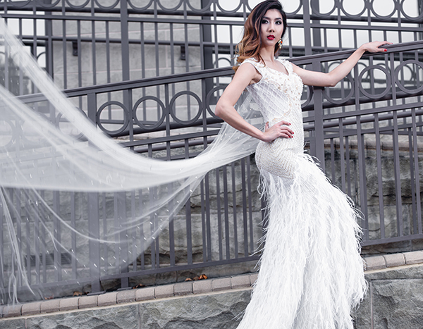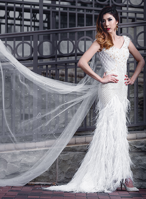 Váy cưới đính lông vũ mang đến cảm giác ấm áp cho người nhìn, không những thế, mẫu váy này còn có vẻ đẹp vừa hoang dã, vừa sang trọng.