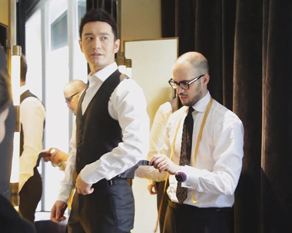 "Đám cưới thế kỷ" của Huỳnh Hiểu Minh và Angelababy diễn ra đầu tháng 10/2015 khiến công chúng choáng ngợp vì độ lộng lẫy và quy tụ hàng loạt tên tuổi lớn của làng giải trí Hoa ngữ. Trong đám cưới, cặp tân lang tân nương đầu tư nhiều trang phục đắt tiền, chỉn chu đến từng chi tiết. Cô dâu Angelababy lộng lẫy với váy cưới Dior còn chú rể Huỳnh Hiểu Minh bảnh bao với trang phục của Tom Ford. Trang phục ngày cưới của Huỳnh Hiểu Minh bao gồm một bộ tuxedo màu đen, một bộ vest đen và một bộ vest trắng. Ba bộ Âu phục này đều đi kèm sơ mi, cà vạt lụa trắng, khuy măng sét ngọc trai và giày da đen. Ước tính tổng trị giá trang phục ngày cưới của Huỳnh Hiểu Minh vào khoảng 350.000 NDT (khoảng hơn 1,2 tỷ đồng). Để có vẻ ngoài chỉn chu Huỳnh Hiểu Minh bay sang Pháp để thử trang phục trước khi ngày trọng đại diễn ra. Mỗi chi tiết trên bộ lễ phục đều được nhà mốt Tom Ford chăm chút tỉ mỉ.