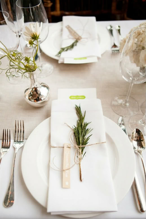 Trong mùa hè, khăn ăn với điểm nhấn nhá xanh mướt của lá cây sẽ mang đến sự mát mẻ, dễ chịu cho khách mời.