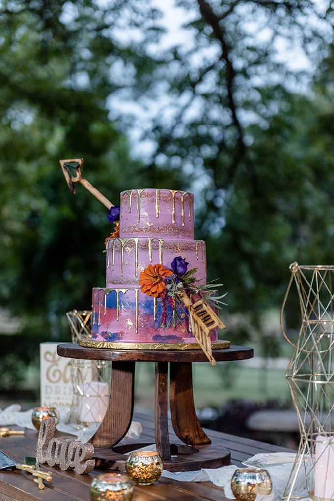 Những giọt kem màu vàng đồng sẽ là điểm nhấn thú vị cho bánh cưới của hai vợ chồng, là xu hướng được tờ Wedding Wire dự báo sẽ trở nên phổ biến trong trang trí bánh cưới.