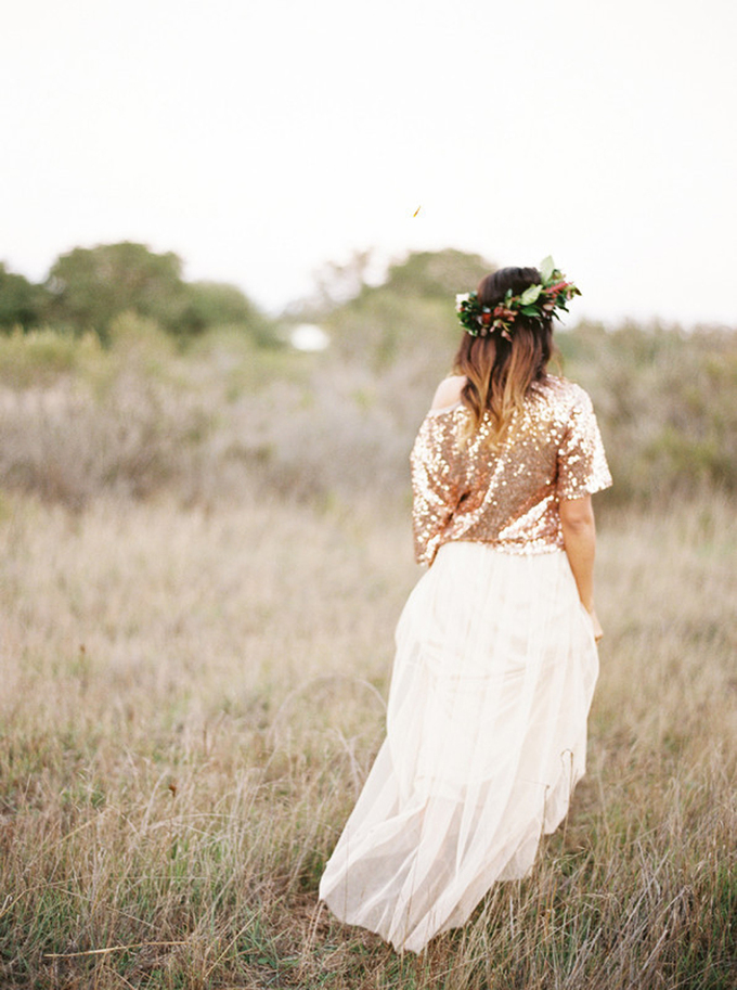 Những cô dâu cá tính có thể mặc bộ váy rời thay vì váy liền. Với độ nổi bật và thu hút của sắc vàng đồng, cô dâu sẽ trở thành tâm điểm trong tiệc cưới.