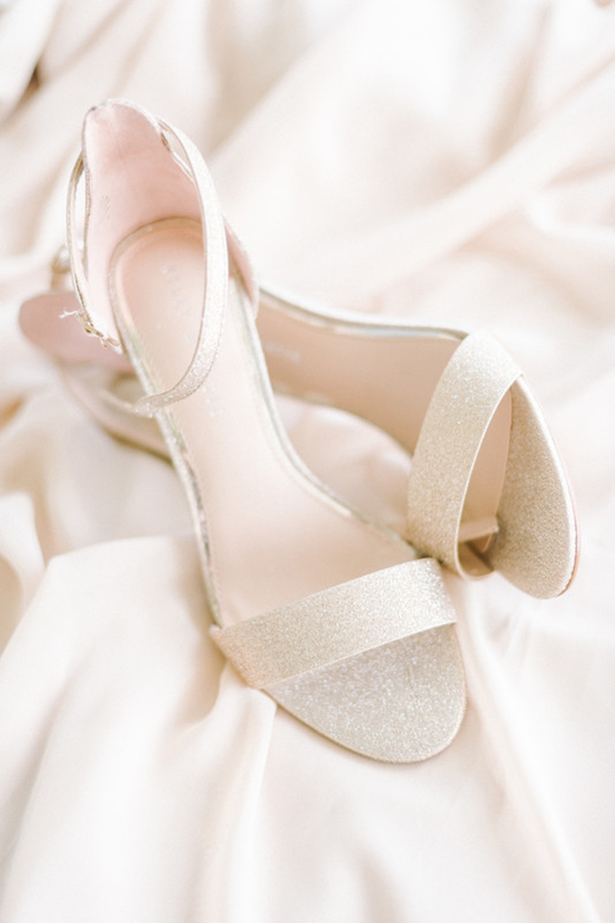 Cô dâu có thể chiều chuộng bản thân với một đôi giày ánh kim lấp lánh. Do đôi giày đã sở hữu màu sắc nổi bật nên tân nương cần ưu tiên thiết kế giày đơn giản, cổ điển để tránh sự rối mắt, làm quá.