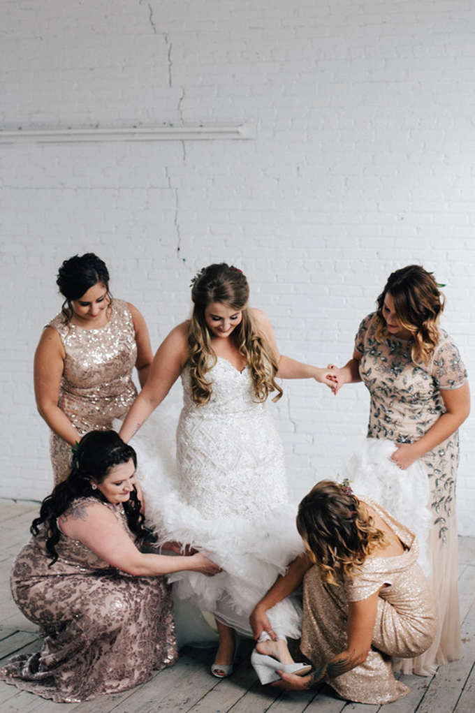 Váy sequin dành cho phù dâu nên có độ trầm vừa phải để không lấn át sự nổi bật dành cho cô dâu. Mẫu váy có thêm họa tiết để tăng sự nữ tính cho người mặc.