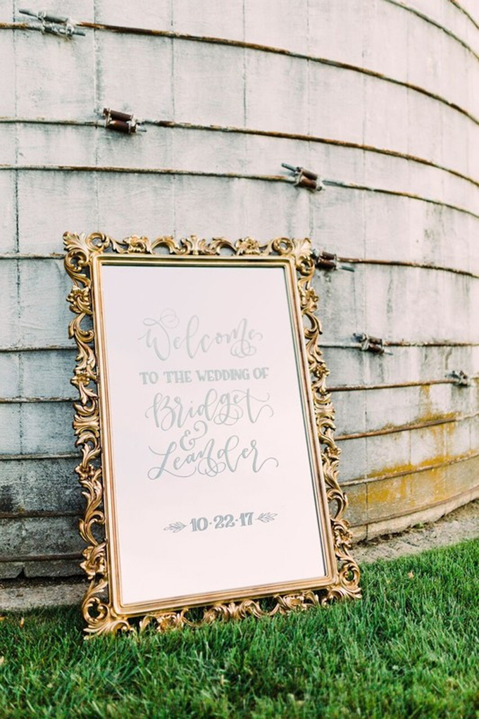Khung dành cho bảng welcome có họa tiết uốn lượn theo phong cách cổ điển, mang đến nét ấn tượng cho không gian tiệc cưới.