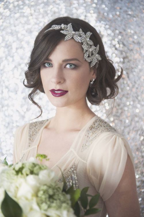 Tóc gợn sóng, tạo kiểu nhẹ nhàng rất thích hợp với tân nương yêu vẻ đẹp cổ điển. Bạn có thể nhấn nhá thêm băng đô hoặc đồ cài tóc kết cườm to bản để tăng thêm vẻ vintage.