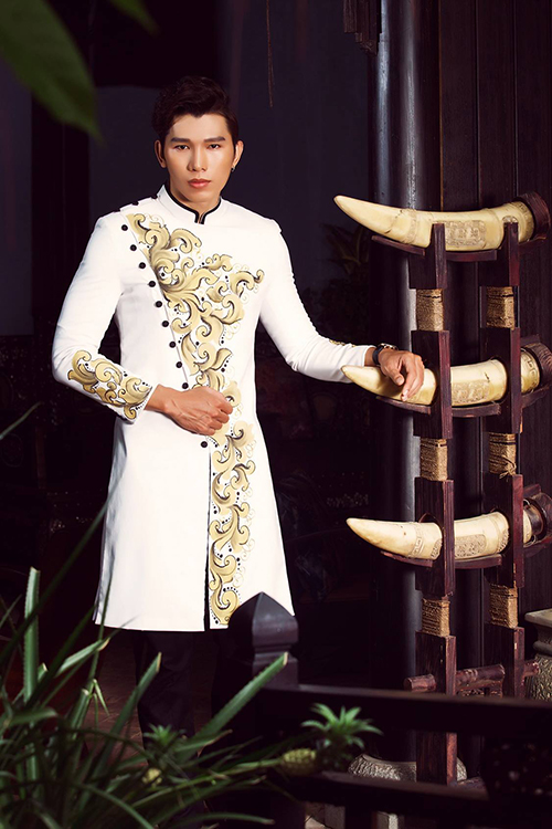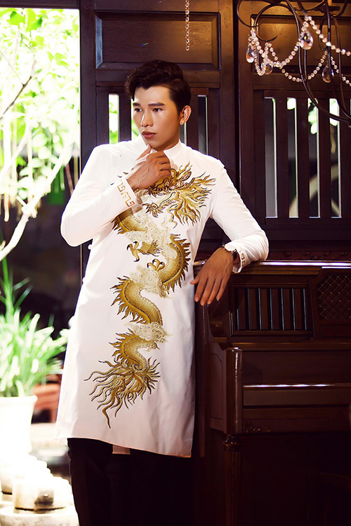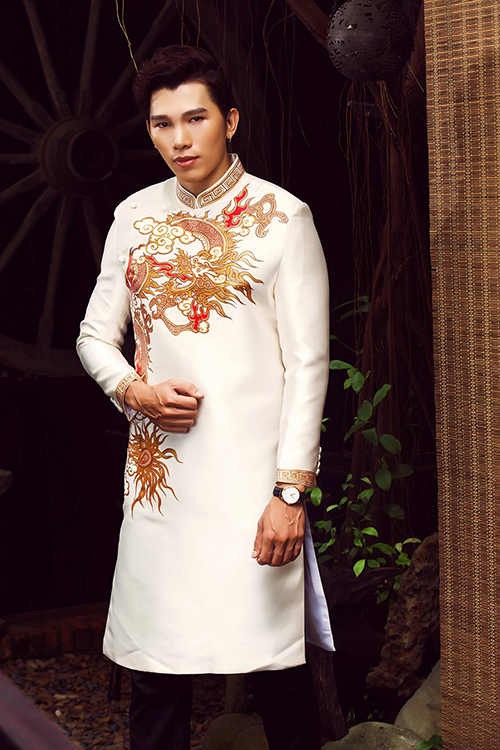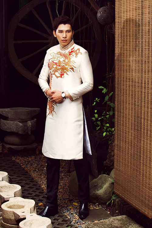Áo cho các chàng thường có phom dáng đơn giản, cách tân bằng kiểu vạt ngắn, để thoải mái trong việc di chuyển.