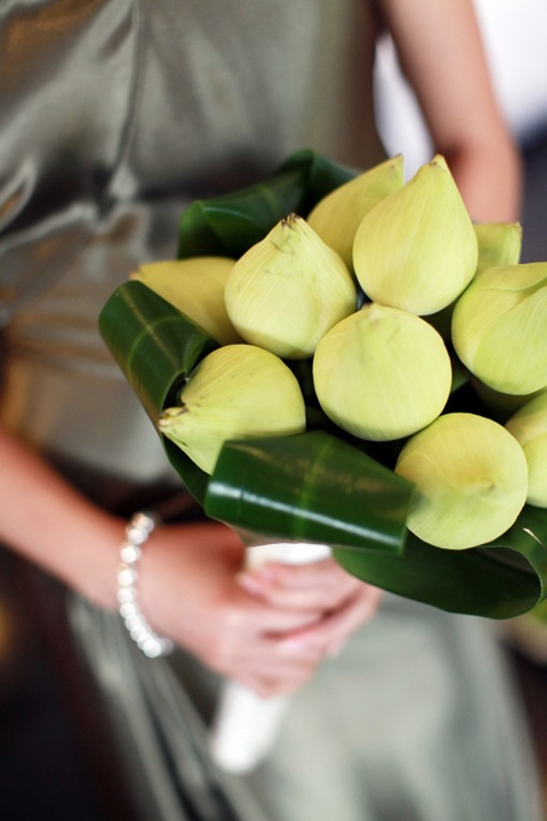 Chọn bó hoa sen làm hoa cầm tay cô dâu hay trang trí tiệc cưới không phải trào lưu quá mới lạ. Khi hoa nhập khẩu bắt đầu trở nên bão hòa, nhiều nàng dâu đã lựa chọn những loại hoa nội thân thuộc như sen, cúc, lay ơn...