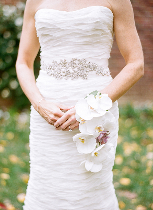 Dáng hoa trải dài thân váy giúp bạn trông thon thả hơn, tạo cảm giác như những cánh hoa rơi. Hơn nữa, với kiểu hoa này, cô dâu có thể sử dụng đôi bàn tay một cách thoải mái, thay vì việc phải giữ bó hoa trong suốt lễ cưới,