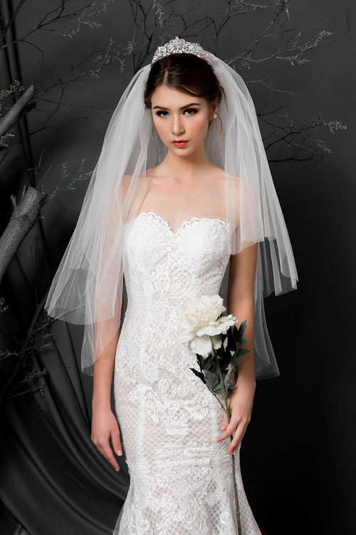 Với những nàng dâu ưa thích sự quyến rũ thì váy đuôi cá là một sự lựa chọn không tồi cho mùa cưới năm nay. Thiết kế cách tân, đơn giản, đường may khéo léo giúp bạn khoe trọn đường cong quyến rũ. Những chi tiết hoa văn được thêu trên thân váy tạo hiệu ứng 3D sinh động.