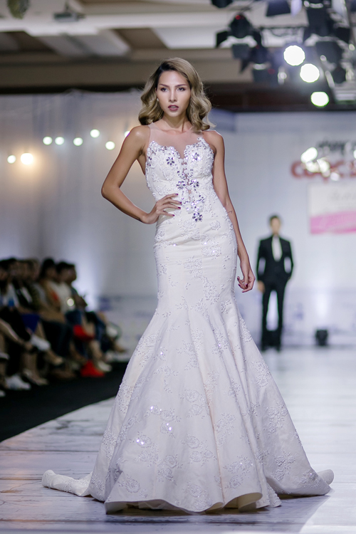 Dàn người mẫu Việt khoe sắc với các mẫu áo cô dâu trong chương trình 'Phong cách và Cuộc sống'.