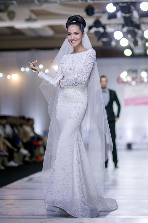 Đi đôi với những kiểu váy cưới tùng xoè rộng lớn theo phong cách cổ điển là những mẫu váy ôm dáng dài, váy xẻ cao, váy đuôi cá mang hơi thở đương đại.