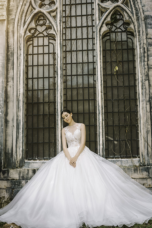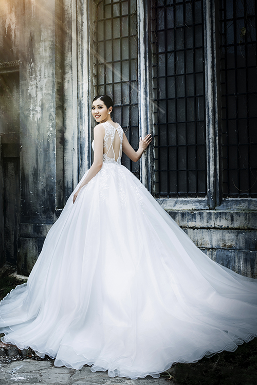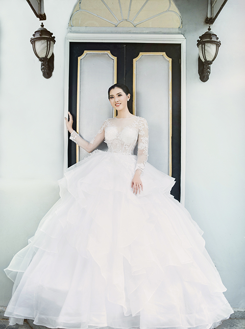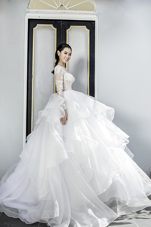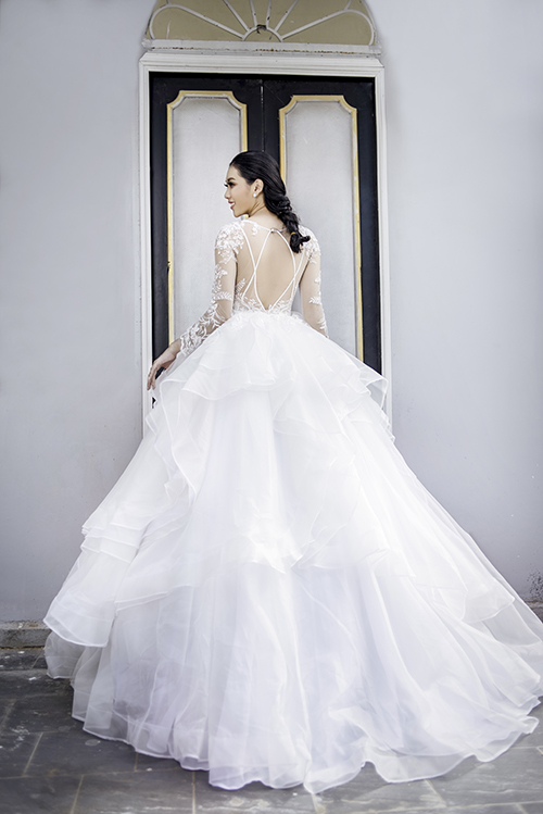 Dáng váy bồng giúp tôn lên vẻ đẹp nhẹ nhàng, nữ tính của cô dâu phương Đông, những vẫn thể hiện được sự gợi cảm qua đường cắt “nửa kín nửa hở” ở ngực.