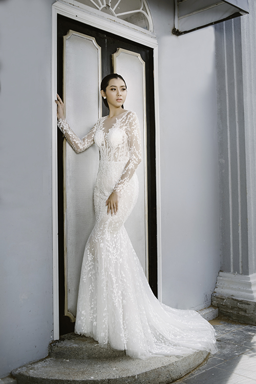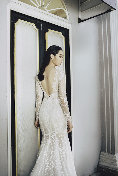 Sự đầu tư kỹ lưỡng trong kỹ thuật cắt ráp đã mang đến nhiều mẫu váy đuôi cá công phu, tôn nét quyến rũ cho cô dâu mới.