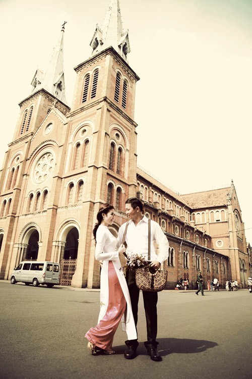 Một Sài Gòn xưa tái hiện trong bức ảnh cưới chụp tại nhà thờ Đức Bà