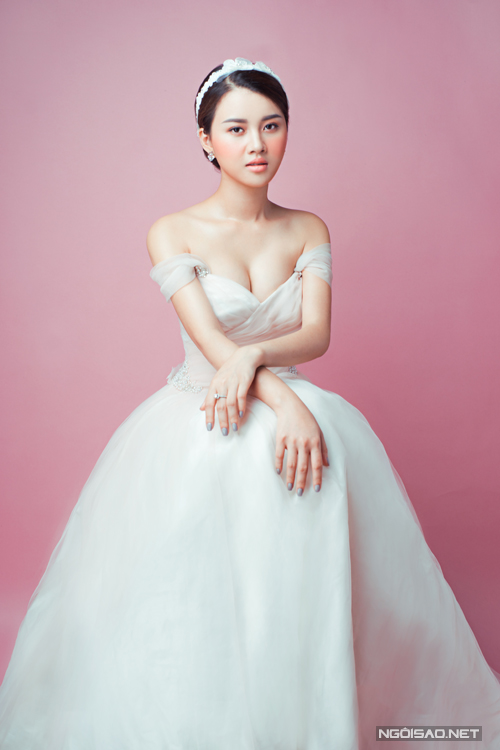 Lớp nền được chăm chút kỹ lưỡng, mỏng, màu nude tiệp với màu da, tạo cảm giác làn da khỏe khoắn, căng mọng. Trên gương mặt, đôi mắt là điểm nhấn cần được chăm chút. Chuyên gia trang điểm sử dụng kem nền để che đi quầng thâm mắt giúp đôi mắt cô dâu thêm long lanh.