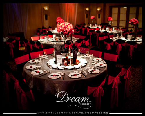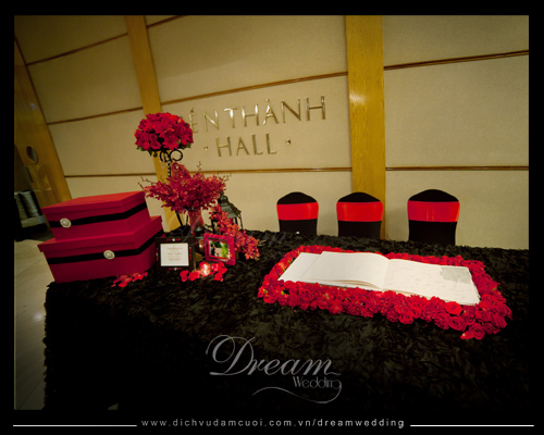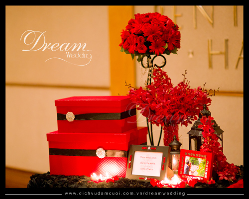 Đám cưới của Quỳnh Huy & Vân Khanh tổ chức tại sảnh tiệc cưới của New World Hotel được Dream Wedding trang trí dựa theo tông màu chủ đạo là đỏ đen. Tạo nên 1 không gian cưới ấn tượng với 2 tông màu mạnh kết hợp với nhau. Sau đây những hình ảnh đẹp trong ngày cưới của anh, chị mời các bạn tham khảo: