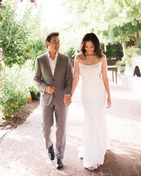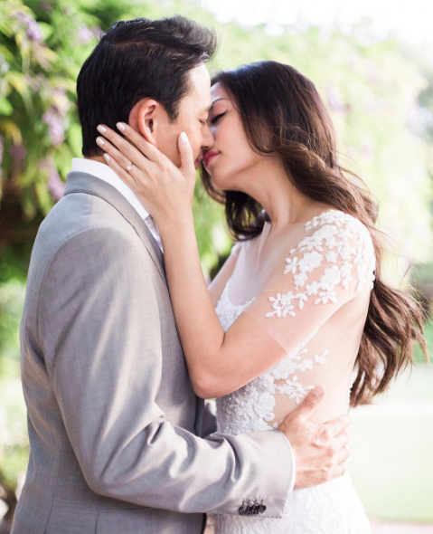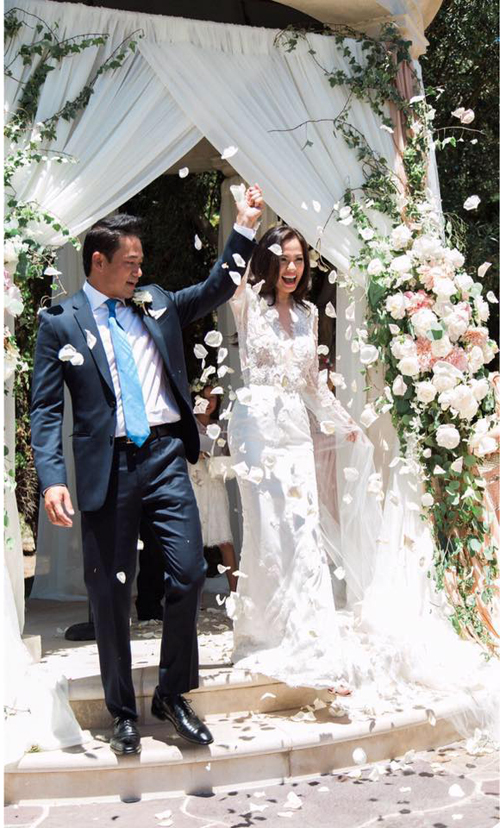 Trên trang cá nhân, cô chia sẻ khoảnh khắc nắm tay chồng tại lễ đường lãng mạn.