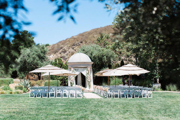 Địa điểm vợ chồng Ngọc Thúy tổ chức đám cưới nằm trong khuôn viên đồng quê xanh mướt. Lễ đường lãng mạn, tràn ngập hoa tươi.
