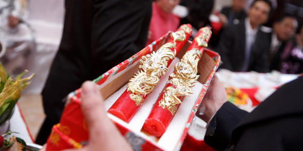 Lễ gia tiên miền Nam còn đặc biệt ở chỗ không thể thiếu một phụ kiện cưới, đó là cặp đèn cầy lớn khắc hình long phụng. Nhà trai sẽ chuẩn bị đôi đèn cầy này đặt trong mâm tráp đem qua nhà gái, nhà gái sẽ chuẩn bị sẵn một cặp chân nến và thắp trên bàn thờ tổ tiên trong ngày đón dâu. Thông thường, đèn cầy của người theo đạo Phật hoặc không theo đạo là đèn cầy long phụng màu đỏ, đèn cầy của người theo đạo Thiên Chúa thường là màu hồng.