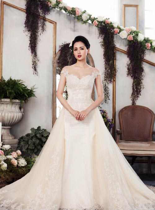 Nữ diễn viên hóa cô dâu mơ màng trong những mẫu váy cưới ren mới nhất.