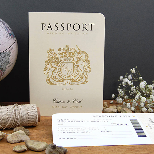 Thiệp cưới cho cặp đôi thích du lịch với hình passport dễ thương
