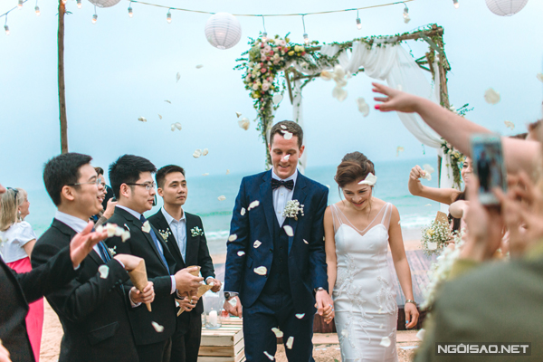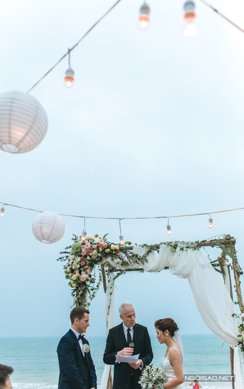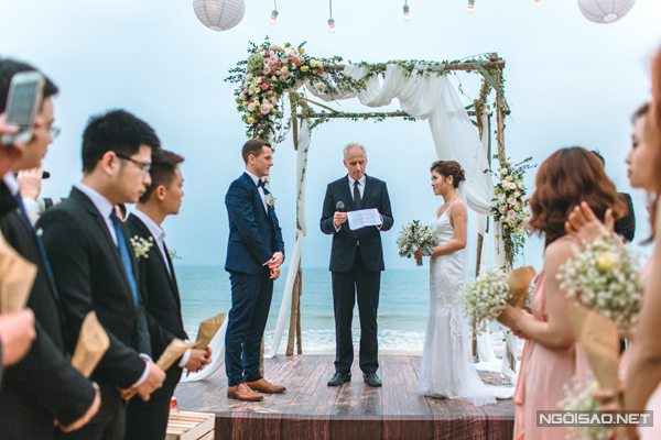 Tiệc cưới lãng mạn trên bãi biển của cô dâu Việt và chú rể Anh