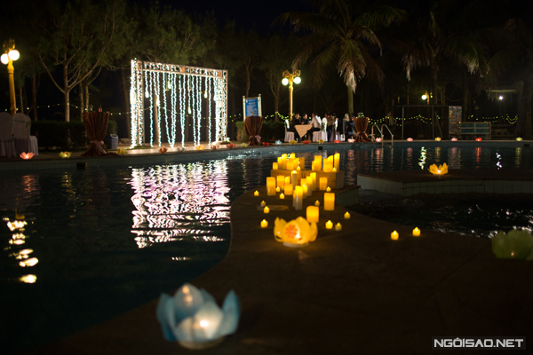 Cô dâu đặc biệt yêu thích sự lung linh của ánh nến và ánh đèn, vì vậy, tiệc cưới buổi tối sử dụng rất nhiều nến và đèn.