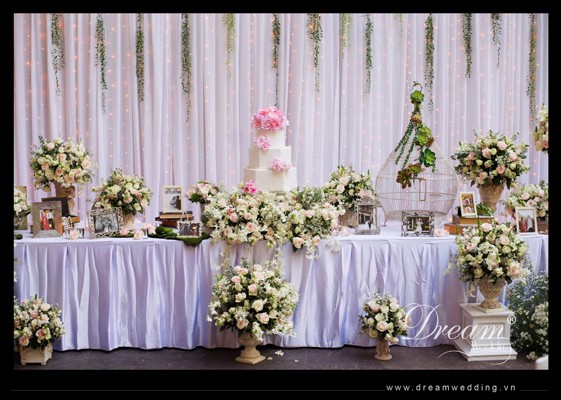Đám cưới cặp đôi Cường & Thảo tổ chức tại khu vực sân vườn khách sạn Rex được Dream Wedding thiết kế và trang trí dựa theo tông màu chủ đạo là hồng pastel kết hợp trắng của các loại hoa sao cho phù hợp và hài hòa với không gian sân vườn nơi tiệc cưới diễn ra. Sau đây mời các bạn tham khảo 1 số hình ảnh đẹp trong đám cưới anh, chị: