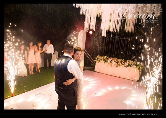 Trang trí tiệc cưới ngoài trời, trang trí tiệc cưới tại Thảo Điền Village - CD & CR khiêu vũ cùng khách mời